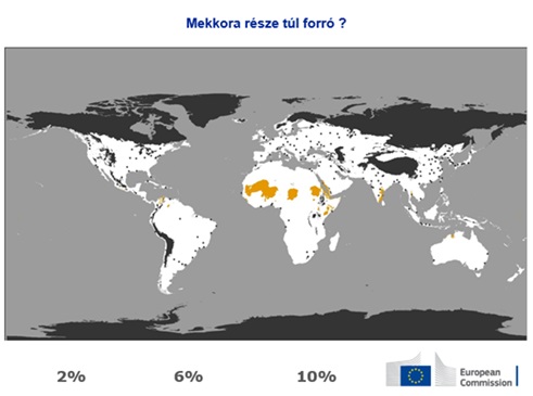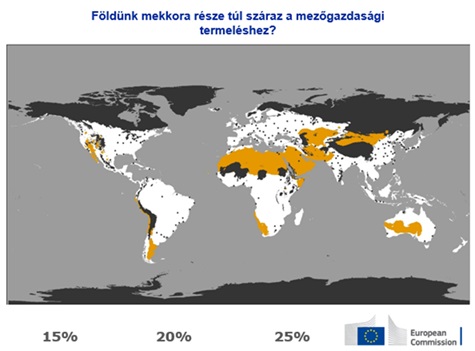 2% a helyes válasz. Más vidékeken éppen ennek ellenkezője a probléma: a nappali 50 °C-os hőmérséklet, valamint az évi 250 mm alatti csapadékmennyiség teszi lehetetlenné a mezőgazdaságot. Ráadásul növényzet és humuszos talaj híján ezek a területek még a kevés csapadékot sem képesek megtartani. A klíma ilyen formája nemcsak a haszonnövények növekedését, de a talajképződést és az ökoszisztémák kialakulását is megakadályozza.
