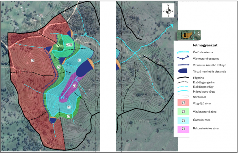 - Tározók, vizes élőhelyek és tájba illesztett víztestek létrehozása, amelyek a csapadékos időszakokban tározóként funkcionálnak, aszály idején pedig öntözési és ökológiai vízpótlást biztosítanak.